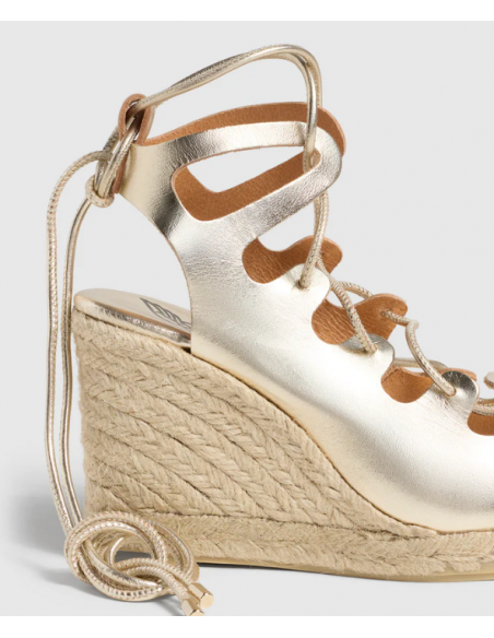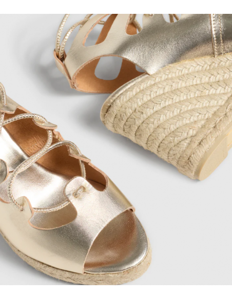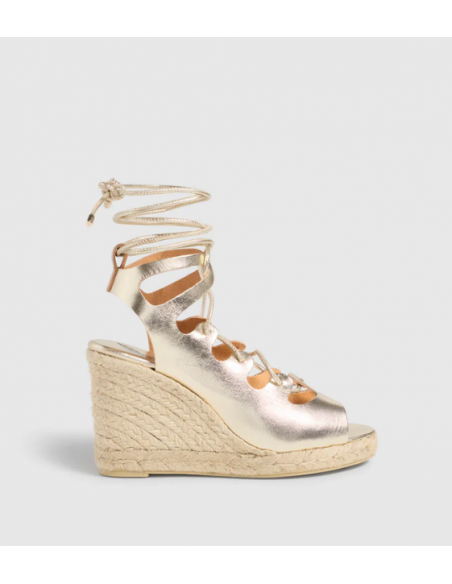 Edición limitada Castañer x Ancient Greek Sandals.Un modelo único para una personalidad única. Confeccionadas en cuero , las alpargatas Antigone presentan puntera abierta redondeada,cierre mediante lazada, cuña de 9 cm y suela de caucho vulcanizado.
