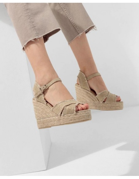 Alpargata Castañer con cuña elaborada en lino.
