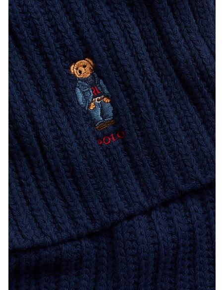 No te pierdas esta encantadora bufanda de mezcla de lana que presenta un diseño clásico en punto de canalé. Pero eso no es todo, ¡también cuenta con la adorada mascota, el Polo Bear, luciendo un look denim y nuestro emblemático jersey "RL"!