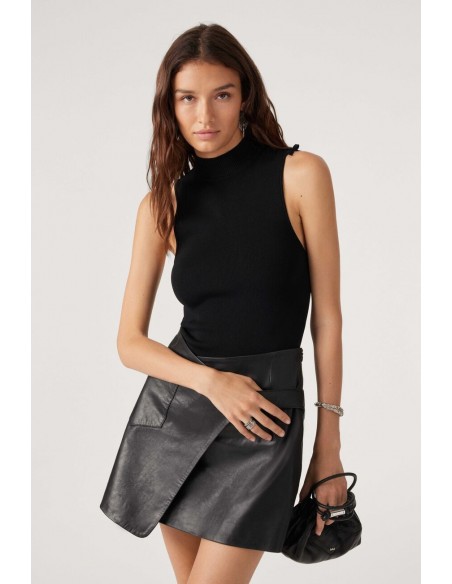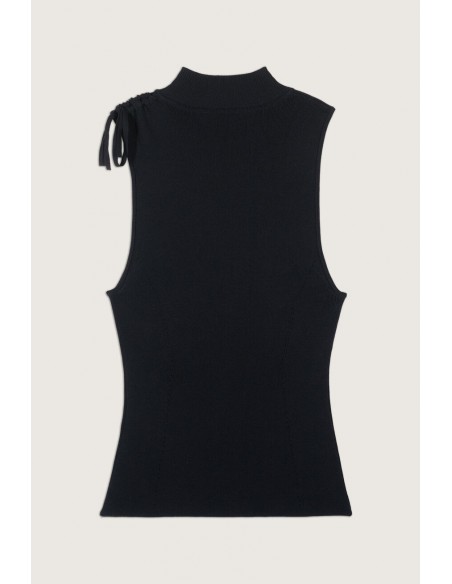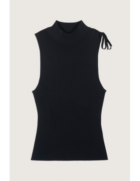El top EVOLI es un imprescindible en tu guardarropa. Su diseño sencillo con cuello alto, ajuste delgado y canalé fino lo convierten en una pieza versátil. Lo más destacado: su acabado anudado en el lateral que agrega un toque irresistible. Este modelo es perfecto para combinar con vaqueros o una falda, e incluso puede llevarse debajo de una pequeña chaqueta.