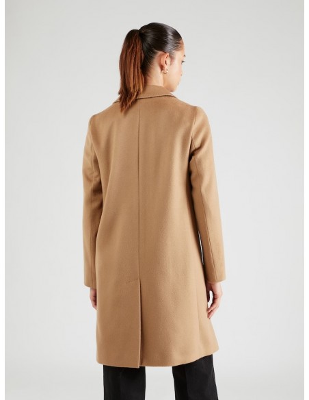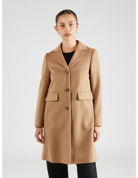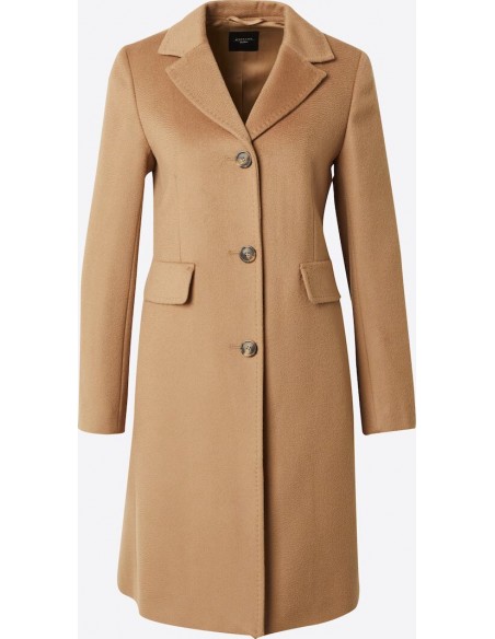 Este abrigo está confeccionado en paño de lana pura y presenta una solapa, mangas largas pegadas y bolsillos con tapeta aplicada. La abertura en la espalda resalta la línea ligeramente ceñida de la prenda. Se cierra de forma recta con botones y tiene una longitud de 95 cm. Además, está forrado internamente para mayor comodidad y calidez.