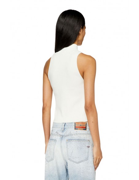 Este top sin mangas para mujer redefine la comodidad y el estilo con su diseño vanguardista. Confeccionado en punto de canalé flexible, garantiza un ajuste ceñido al cuerpo que resalta la figura con elegancia. El cuello alto y ligeramente acortado añade un toque moderno y sofisticado, elevando la prenda a un nivel de moda actual.