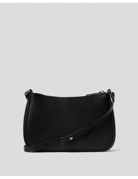 Este bolso bandolera pequeño de Karl Lagerfeld, fabricado en nylon, es un accesorio minimalista confeccionado en piel técnica y destacado por el logo metálico de la marca en su parte central. Presenta una correa ajustable que te permite llevarlo cómodamente al hombro o cruzado como bandolera. Esencial para el otoño, este bolso será tu compañero constante, ideal para combinar con unos jeans y una blusa.