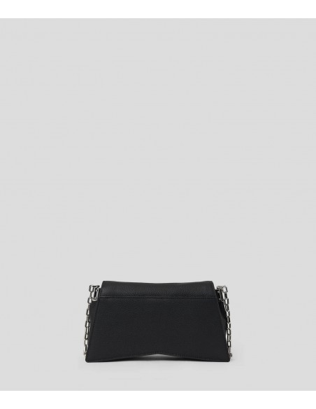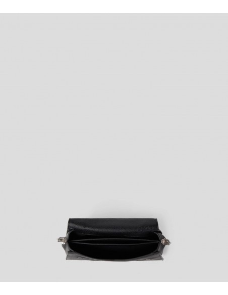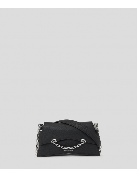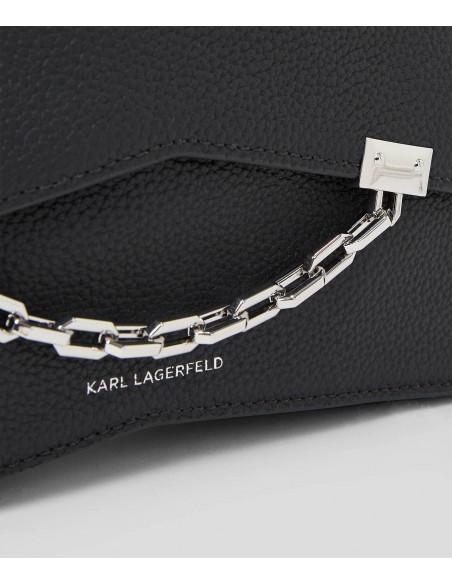 El bolso bandolera, confeccionado en piel granulada, presenta una silueta sorprendente inspirada en la inicial K, aportando un toque distintivo a cualquier atuendo. Este diseño sofisticado se complementa con una cadena decorativa y una correa para el hombro, mezclando elegancia y practicidad. Forma parte de la colección Esencialmente Karl, la cual conmemora la exhibición "Karl Lagerfeld: Una línea de belleza" del Costume Institute 2023 del Museo Metropolitano de Arte. El cierre con solapa, la correa de piel y cadena, junto con el logotipo de KARL, confieren un estilo distintivo a esta pieza única.