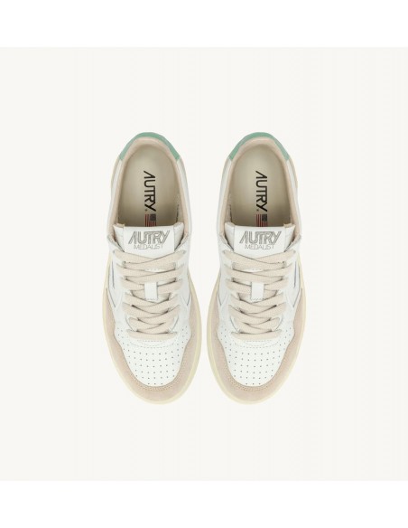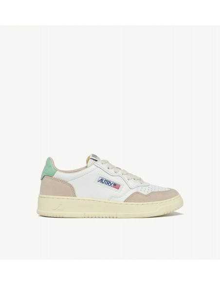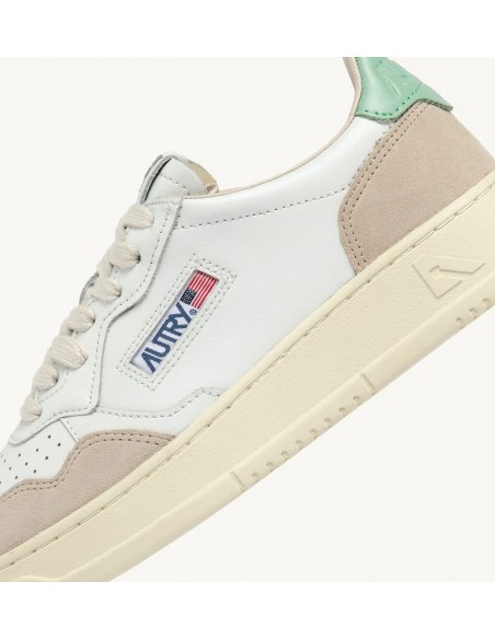 Autry Medalist, inspiradas en el diseño vintage de los años 80 y reinterpretadas con un toque moderno, son zapatillas bajas de estilo vintage. La parte superior combina cuero blanco y ante, con el icónico logo grabado en un llamativo parche trasero. Estas zapatillas destacan por su elegancia clásica y detalles como la puntera perforada, cordones de algodón plano, y el cuello acolchado.