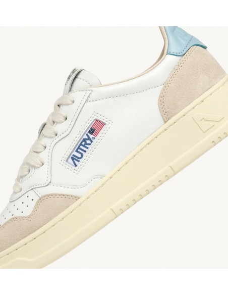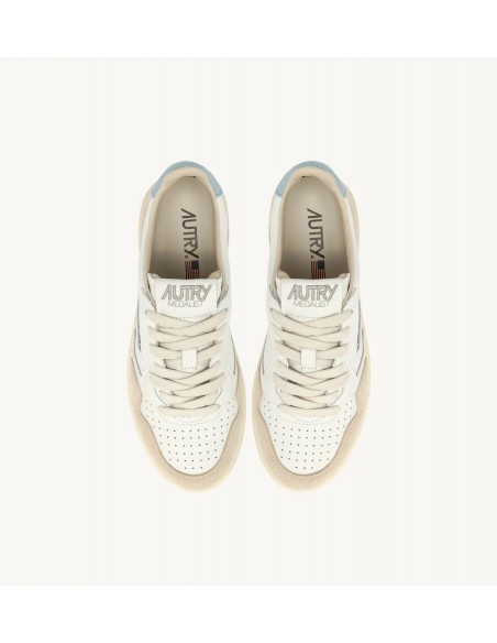 Autry Medalist, inspiradas en el diseño vintage de los años 80 y reinterpretadas con un toque moderno, son zapatillas bajas de estilo vintage. La parte superior combina cuero blanco y ante, con el icónico logo grabado en un llamativo parche trasero. Estas zapatillas destacan por su elegancia clásica y detalles como la puntera perforada, cordones de algodón plano, y el cuello acolchado.