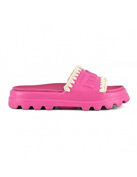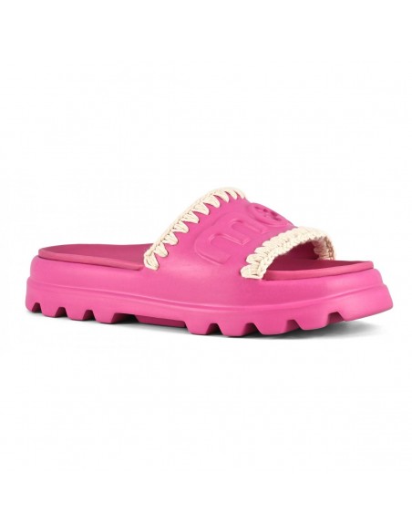 Una nueva adición para la temporada primavera-verano 2024, el modelo de una pieza Eva Slide ofrece el toque perfecto de color para la temporada de verano. Hecho a mano en cómoda espuma EVA con los detalles distintivos de ganchillo de algodón de MOU, una plantilla acolchada y una suela flexible y ligera de EVA/goma.