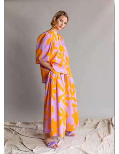 Esta blusa abullonada presenta un diseño encantador y femenino con un estampado de flores en tonos lila y naranja, lo que le otorga un aire primaveral y vibrante. Con mangas abullonadas, añade un toque de romanticismo y elegancia a cualquier conjunto. El escote puede variar según el estilo deseado, desde un escote cuadrado hasta un escote en V, realzando la feminidad y la versatilidad de la prenda. Fabricada en un tejido ligero y fluido, esta blusa es perfecta para lucir tanto de día como de noche, combinada con unos pantalones vaqueros para un look casual o con una falda lápiz para un estilo más sofisticado. Es una elección ideal para añadir un toque de color y alegría a tu armario esta temporada.