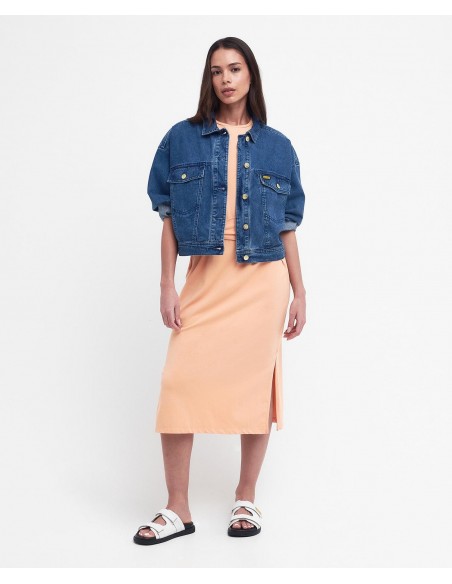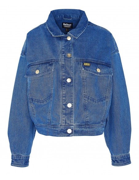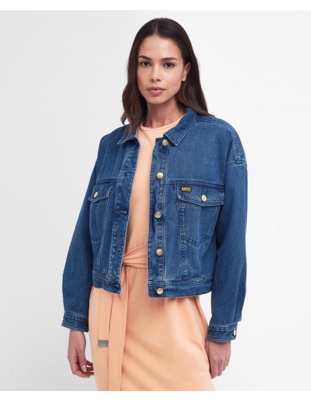 Mejora tu guardarropa de temporada con la sobrecamisa B.Intl Lorimer de Barbour International. Con una silueta de estilo camionero en denim y detalles de latón, esta pieza recortada es ideal para superponer sobre vestidos y camisetas en las noches frías de la ciudad, agregando un toque fresco y con estilo a tus conjuntos favoritos.