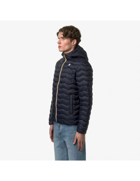 El estilo Jack de K-Way es una chaqueta clásica para hombre que refleja el compromiso de la marca con la protección del medio ambiente. Está confeccionada con nailon reciclado que ofrece protección contra el viento y la lluvia, y presenta un acolchado ondulado que le da una apariencia gráfica distintiva. El relleno está hecho de Thermore®, una fibra altamente aislante creada a partir de plástico reciclado, lo que garantiza un abrigo cálido y ecológico.