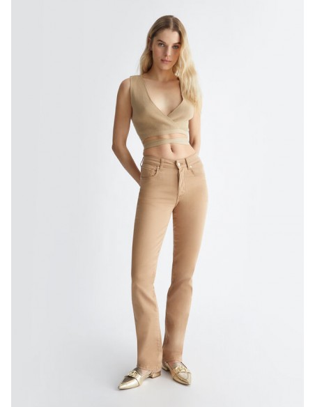 Pantalón en mezcla de algodón elástico Talle alto