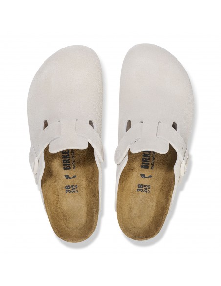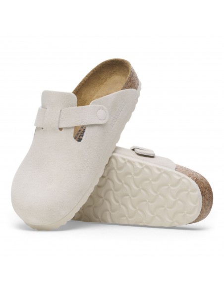 El zueco Boston de BIRKENSTOCK, un clásico atemporal, se presenta con un estilo moderno y natural gracias a su material superior de suave ante de alta calidad con acabado encerado. Cuenta con una base de corcho y látex de forma anatómica, una plantilla de ante, y una suela de EVA/goma. Los detalles incluyen una hebilla de espiga de metal para un ajuste individual, proporcionando un ajuste perfecto y un look distintivo.