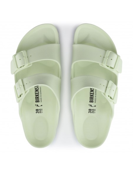 El modelo Arizona de BIRKENSTOCK es un auténtico clásico, inspirado en la sandalia de corcho, pero fabricado en EVA. Este material plástico de alta calidad es ligero, resistente al agua, elástico y respetuoso con la piel, ofreciendo el confort habitual de BIRKENSTOCK. La base anatómica, el material superior, la plantilla y la suela están hechos de EVA de una sola pieza, haciendo que estas sandalias sean ultraligeras, lavables y extremadamente cómodas.
