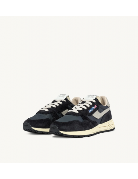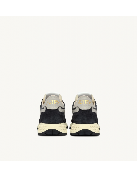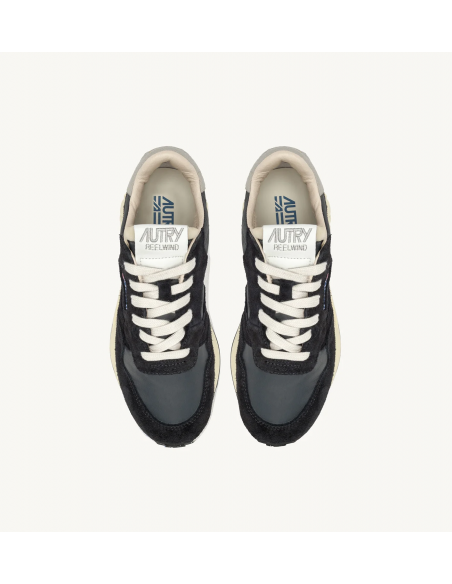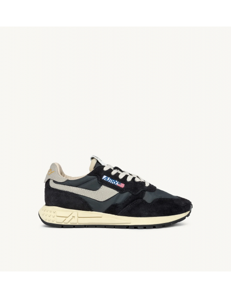 Innovadoras, ligeras y notablemente flexibles, las zapatillas Reelwind de Autry están inspiradas en estilos de running. Diseñadas para un estilo de vida activo, estas zapatillas combinan ante negro y nylon con detalles en cuero blanco en los laterales. Su perfil elegante y construcción de alto rendimiento aseguran máxima libertad de movimiento. La suela de goma, con un dibujo elevado, presenta un motivo de estrella y el distintivo "A-arrow", una reinterpretación moderna del logo de Autry.