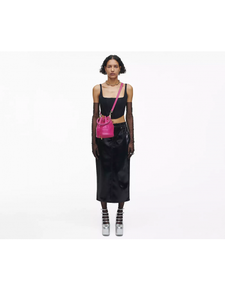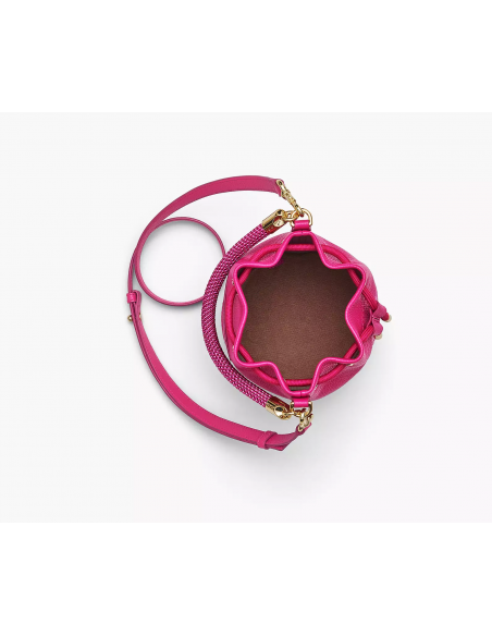 Este bolso saco de piel presenta un distintivo logotipo repujado. Su diseño incluye una cuerda texturizada, cordón ajustable y detalles metálicos. Ofrece practicidad con un bolsillo interior, correa de piel ajustable y viene con una bolsa protectora. El interior contrasta con la piel exterior, añadiendo un toque elegante a este accesorio versátil y sofisticado.
