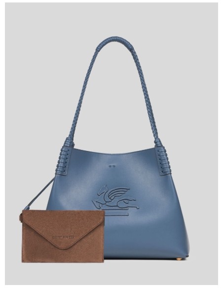 El Bolso Shopper Libra Pequeño de Etro es una pieza sofisticada que combina diseño y funcionalidad. Confeccionado en piel de color liso, destaca por su aplicación de piel en la parte delantera con el icónico logo ETRO Pegaso bordado, aportando un toque exclusivo y refinado.