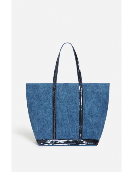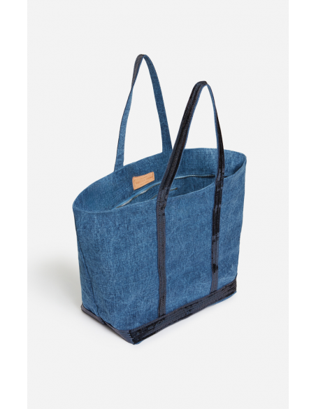 El bolso tote grande Zipped L Cabas de Vanessa Bruno es el modelo más versátil de la colección. Confeccionado en resistente lona de algodón 100% y adornado con lentejuelas, este bolso fabricado en Francia combina estilo, durabilidad y funcionalidad. Gracias a sus asas largas, se puede llevar al hombro o en la mano, e incorpora cierre superior con cremallera para mayor seguridad. Su espacioso interior permite llevar desde un portátil y carpetas A4 hasta un neceser o un libro grande, lo que lo hace perfecto para estudiantes, madres jóvenes o mujeres profesionales. Incluye un bolsillo interior con cremallera y una etiqueta de cuero vegetal con el sello "Le Cabas Vanessa Bruno Made in France".