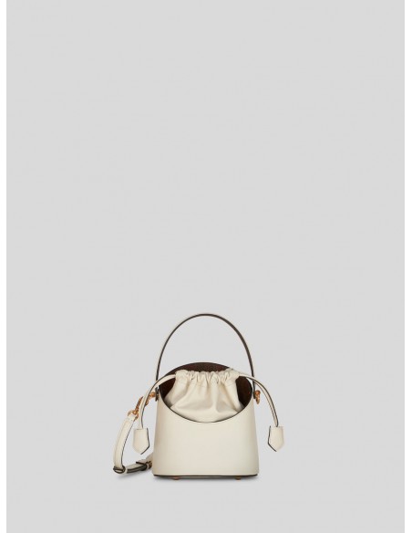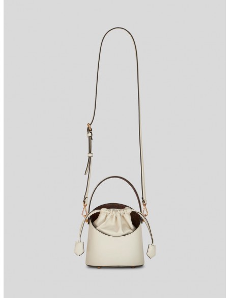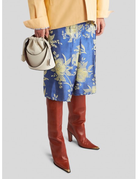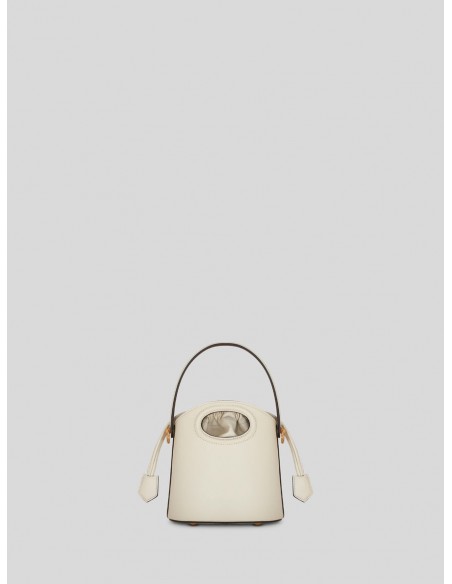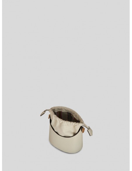El bolso Saturno Pequeño Blanco de Etro fusiona tradición y diseño contemporáneo en una forma de cubo refinada. Confeccionado en el icónico tejido Paisley jacquard con detalles de piel, este modelo compacto presenta un original asa ovalada y un cuerpo interior tipo bolsa con cierre de cordón. Su elegante estructura se apoya sobre pies metálicos para mayor durabilidad. Además, incorpora una correa ajustable y desmontable que permite llevarlo al hombro o cruzado, adaptándose a cualquier ocasión. El interior forrado con rayas aporta un guiño a la sofisticación atemporal de la marca. Un accesorio distintivo para mujeres que aprecian la artesanía y el estilo.
