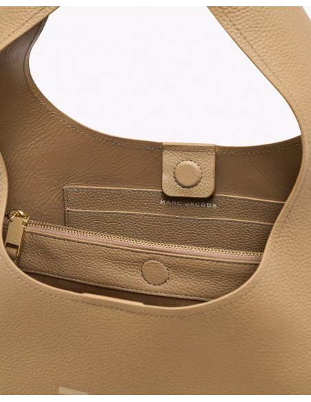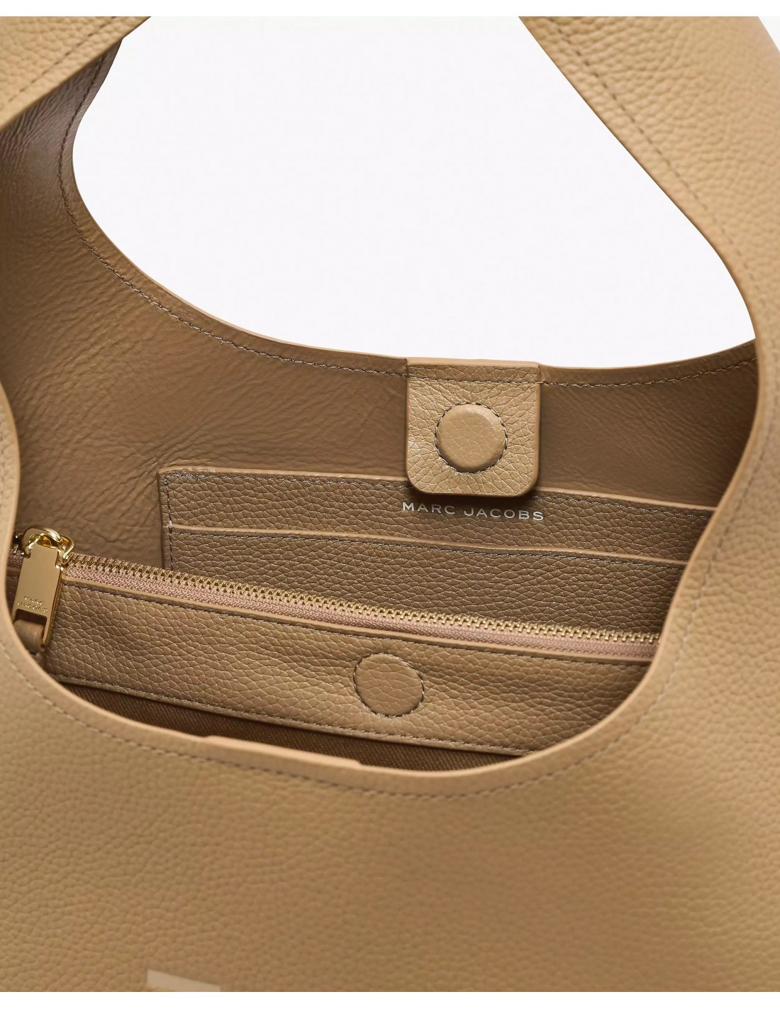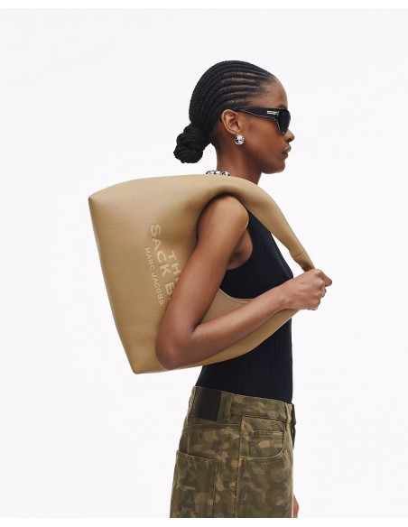 El Sack Bag Camel de Marc Jacobs es un bolso de tamaño medio que combina funcionalidad y estilo contemporáneo. Confeccionado en piel de plena flor ligera, presenta un acabado en relieve tono sobre tono con la marca en la parte frontal y un parche con logotipo en la parte trasera, reflejando la estética sofisticada de la firma.