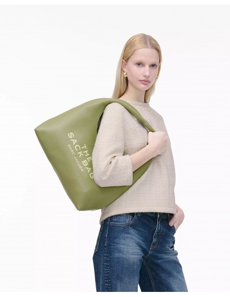 El Sack Bag Reed de Marc Jacobs es un bolso de tamaño medio que combina funcionalidad y estilo contemporáneo. Confeccionado en piel de plena flor ligera, presenta un acabado en relieve tono sobre tono con la marca en la parte frontal y un parche con logotipo en la parte trasera, reflejando la estética sofisticada de la firma.