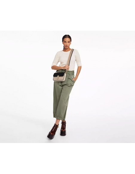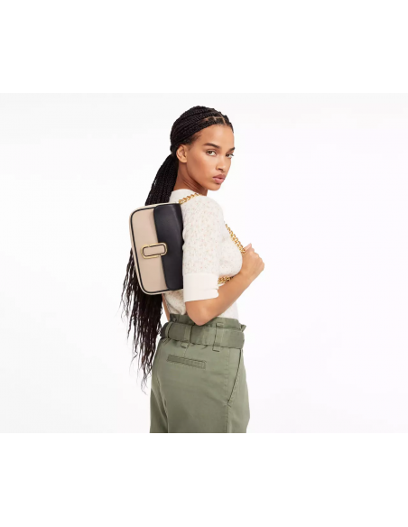 Un bolso de hombro confeccionado en piel flexible y sellado con herrajes J Marc. Realizado en cuero de vaca liso. Cuenta con un cierre magnético y una correa de cadena extraíble para el hombro, correa de cincha texturizada extraíble y ajustable. En el apartado de almacenamiento cuenta con un bolsillo interior abierto, bolsillo interior con cremallera y bolsillo trasero abierto. Como final cuenta con un forro de falla y bolsa guardapolvo.