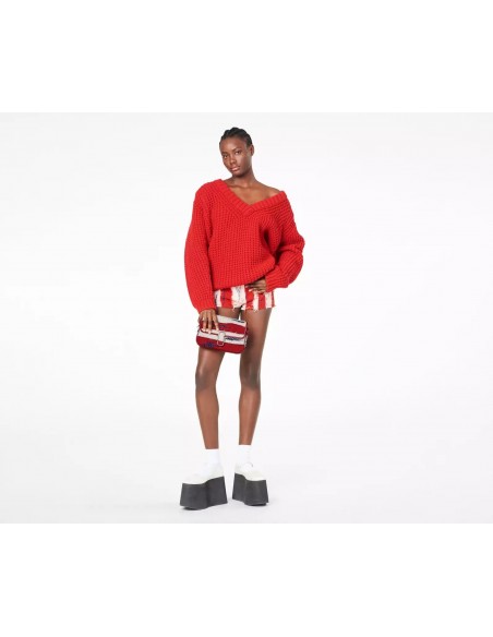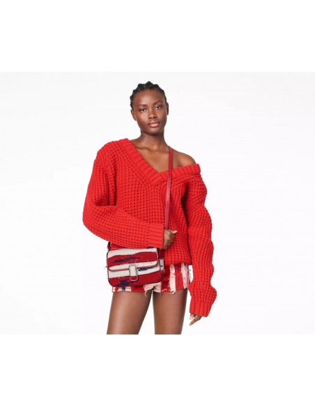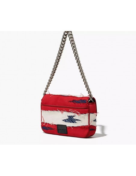 Clásico bolso de MJ esta vez en formato bandolera se ha desgastado a mano el denim con estampado de la bandera estadounidense inspirado en la colección desfile de Primavera 2016. Puedes llevarlo con la cadena y la correa de piel o llévelo como un clutch por la noche.