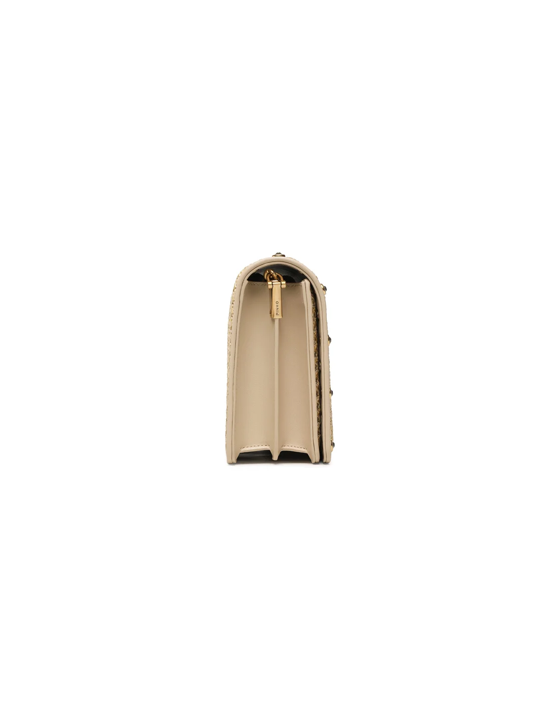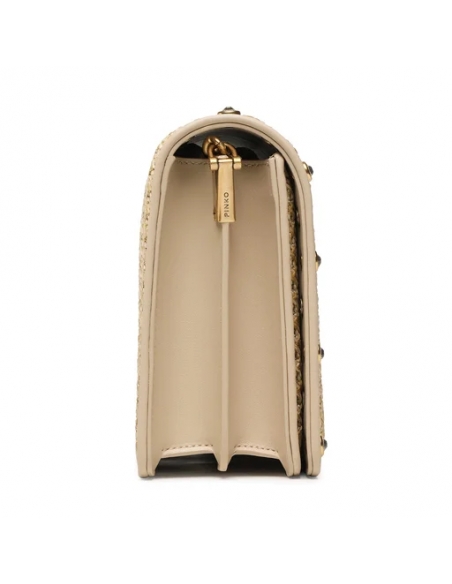 Este bolso presenta un cierre magnético para un fácil acceso. Viene con una correa de hombro ajustable, que tiene una longitud aproximada de 95-110 cm para mayor comodidad. Además, cuenta con piedras ornamentales y herrajes de metal dorado que le dan un toque elegante. En cuanto al interior, está forrado con un revestimiento liso y cuenta con un compartimento principal espacioso.