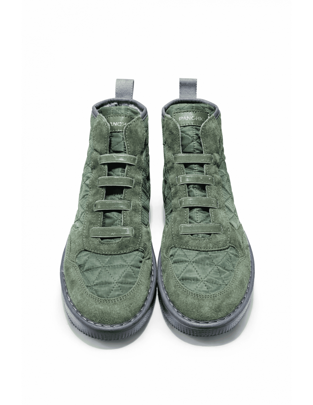 Este botín Panchic de caña media es una opción cómoda y con mucho estilo para el día a día. Está fabricado en una cuidada combinación de ante suave y tejido técnico acolchado, que aporta calidez y un acabado moderno sin renunciar a la elegancia.