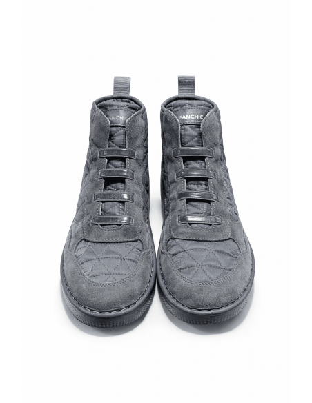 Este botín Panchic de caña media es una opción cómoda y con mucho estilo para el día a día. Está fabricado en una cuidada combinación de ante suave y tejido técnico acolchado, que aporta calidez y un acabado moderno sin renunciar a la elegancia.