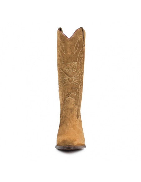 Bota de color marrón con bordados en la caña en forma de alas de águila de fabricación artesanal, es un calzado ideal que te realzará tu belleza. Todo bajo la garantía de Sendra Boots y su centenario GoodYear.