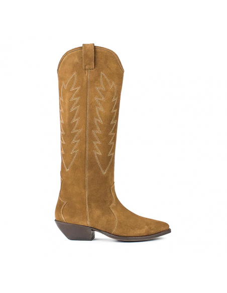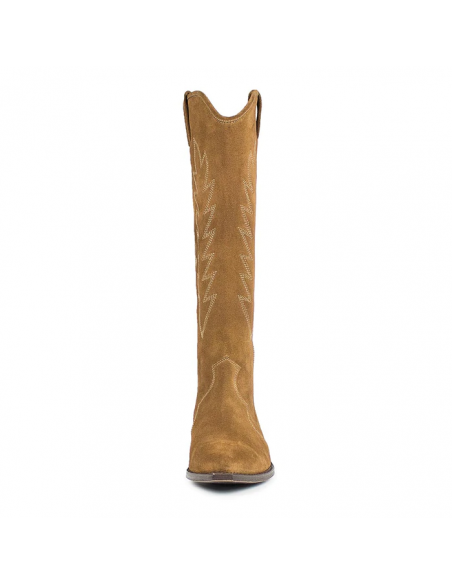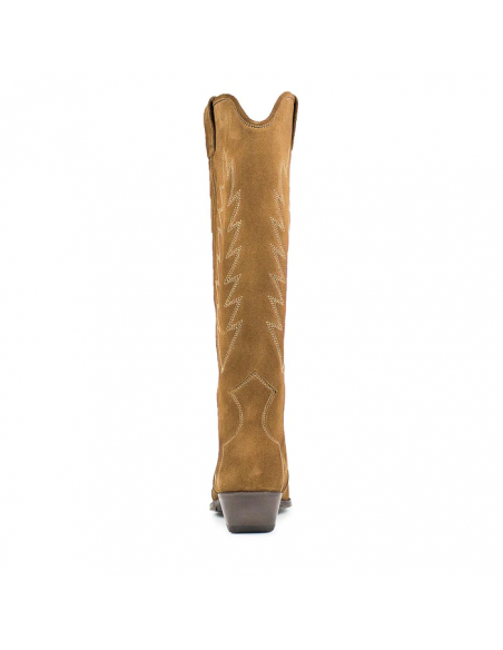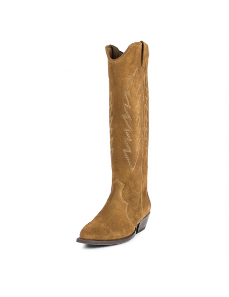 Bota de color marrón caña larga con pespuntes en la caña. Destaca por su fabricación artesanal y su tacón cubano. Todo bajo la garantía de Sendra Boots.