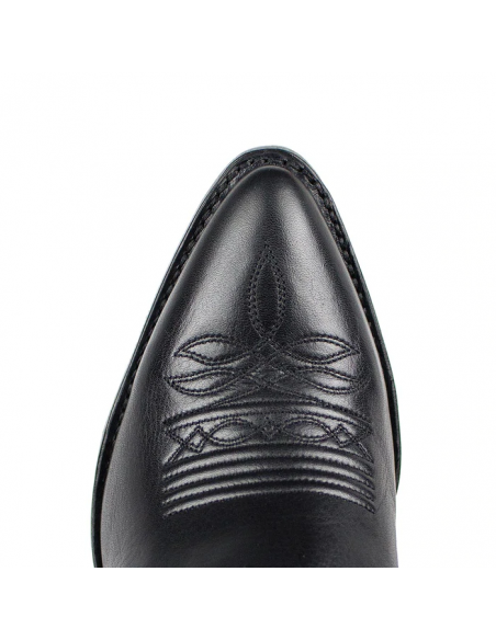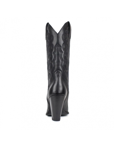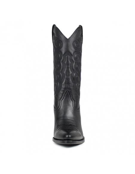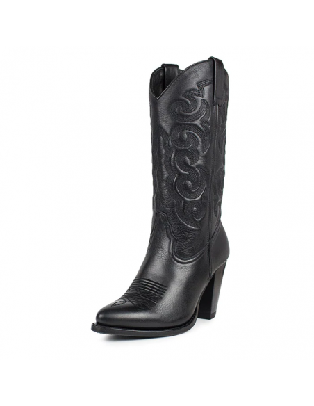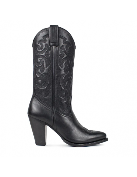 Bota campera de color negro con bordados en la caña. Destaca por su fabricación artesanal y son unas botas que están fabricadas para realzar tu belleza. Todo bajo la garantía de Sendra Boots.