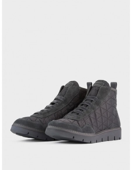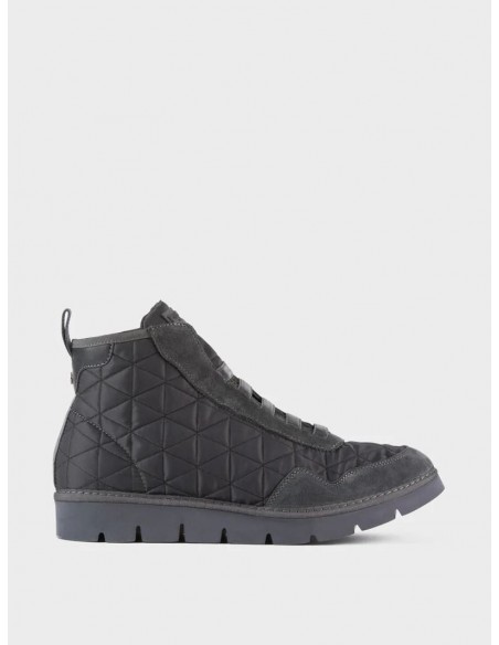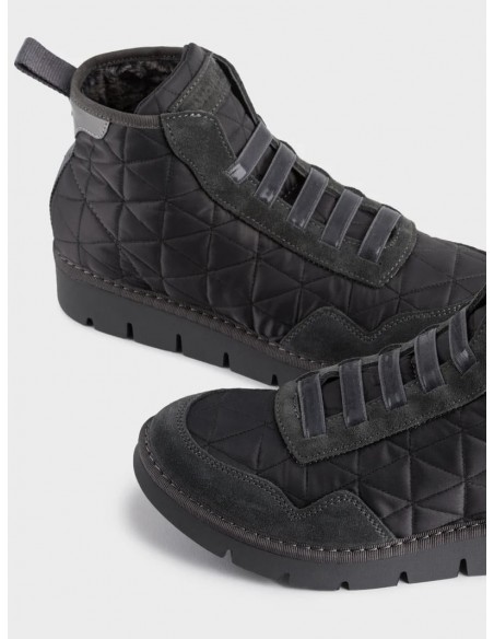 Zapatos abotinados P05 confeccionados inspirándose en el calzado de running. Creados en nailon pespunteado, inserciones de ante y cordones elásticos efecto brillante. Esta versión esta adaptada para esta temporada de otoño/invierno ya que presenta un forro en un cálido tejido efecto pelo para asegurar la temperatura de los pies. Llevan una suela extremadamente flexible gracias a la presencia de ocho incisiones modulares.