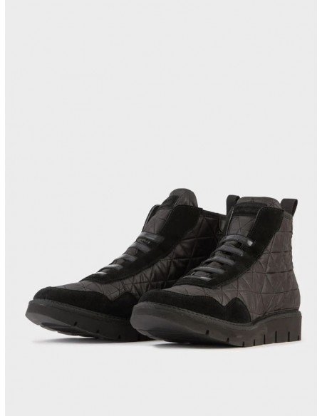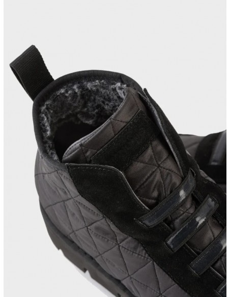 Zapatos abotinados P05 confeccionados inspirándose en el calzado de running. Creados en nailon pespunteado marrón ébano, inserciones de ante y cordones elásticos efecto brillante. Esta versión esta adaptada para esta temporada de otoño/invierno ya que presenta un forro en un cálido tejido efecto pelo para asegurar la temperatura de los pies. Llevan una suela extremadamente flexible gracias a la presencia de ocho incisiones modulares.