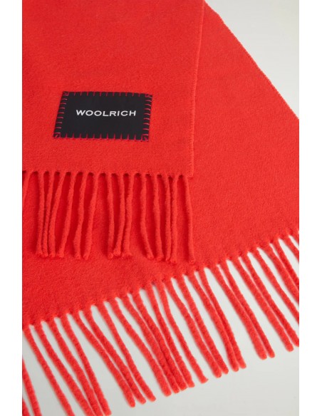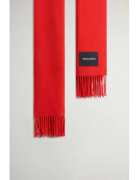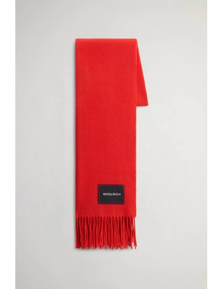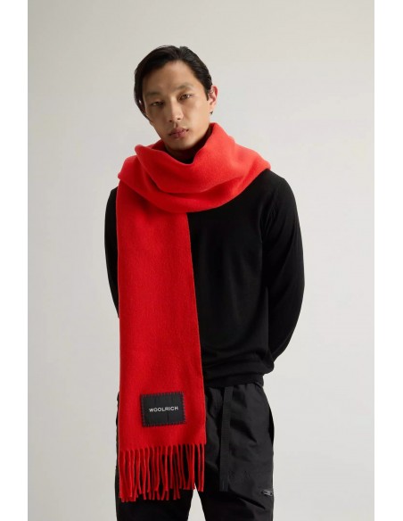 Esta suave bufanda unisex, confeccionada en Italia con pura lana virgen, es el accesorio esencial para los días de invierno. Su diseño en color liso con flecos la hace fácil de combinar con cualquier abrigo, mientras que el parche con el logotipo añade un toque distintivo y personal.