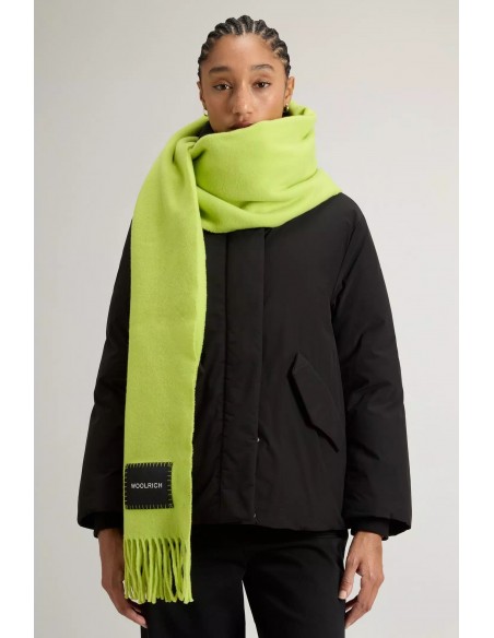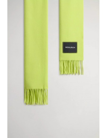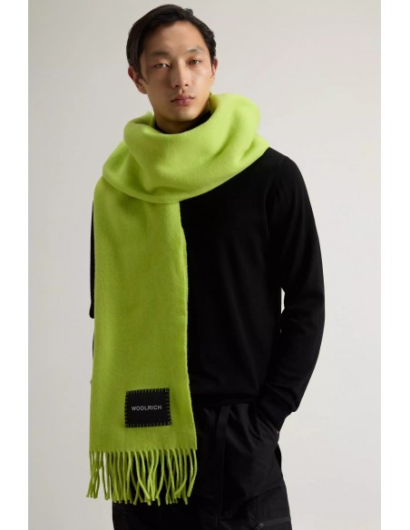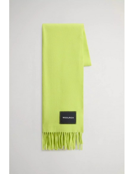 Esta suave bufanda unisex, confeccionada en Italia con pura lana virgen, es el accesorio esencial para los días de invierno. Su diseño en color liso con flecos la hace fácil de combinar con cualquier abrigo, mientras que el parche con el logotipo añade un toque distintivo y personal.