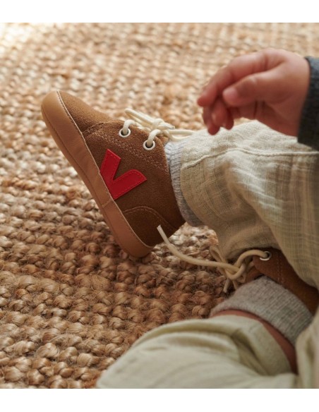 Este producto esta 100% pensado para ser el mejor calzado para los bebes ya que esta curtido y tintado sin el uso de productos químicos peligrosos o prohibidos. La gamuza esta recubierta con aceites hidrófugos sin PFCs (compuestos químicos) para proteger las zapatillas de la lluvia ligera.