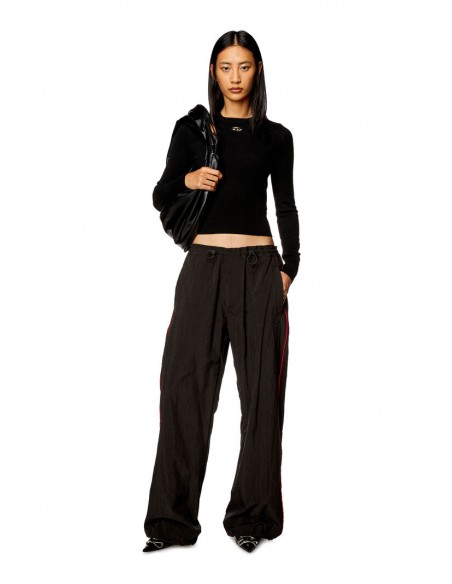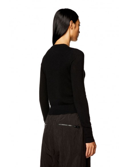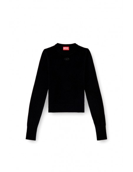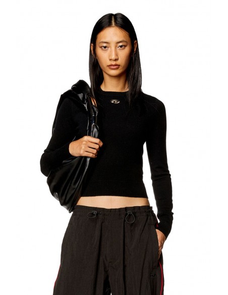 Este top de punto para mujer está elaborado con lana de origen responsable, enriquecida con una generosa cantidad de cachemir reciclado, que le aporta suavidad y un toque lujoso. Con una silueta ajustada y mangas largas, este diseño resalta la figura de manera elegante. Incluye un detalle del logotipo Oval D, recortado y bordado justo debajo del escote, que deja entrever la piel y añade un toque distintivo y sofisticado.