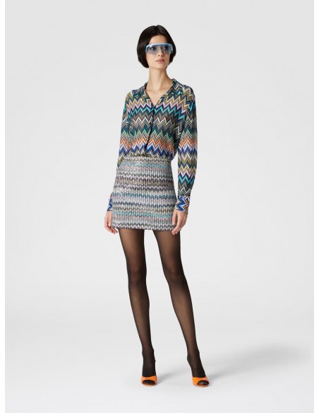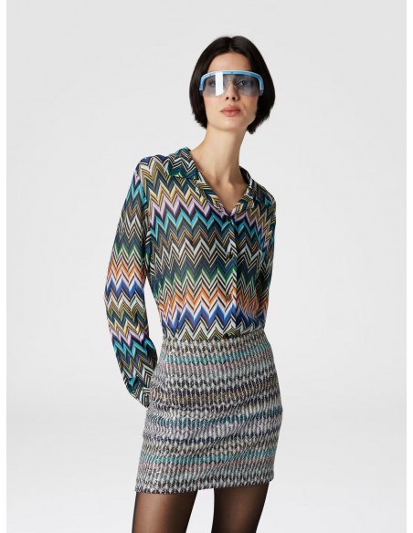 El diseño minimalista de esta camisa de corte bowling resalta la meticulosa técnica raschel, que crea un patrón en zigzag desplazado característico de la prenda. Confeccionada en suave viscosa, es ideal para el look diario, aportando un toque extra de estilo gracias al distintivo sello de Missoni. Este modelo de corte clásico combina elegancia y comodidad, convirtiéndolo en una pieza versátil y moderna para cualquier ocasión.