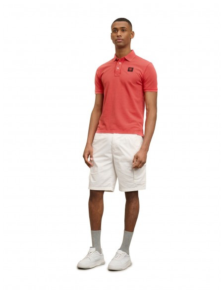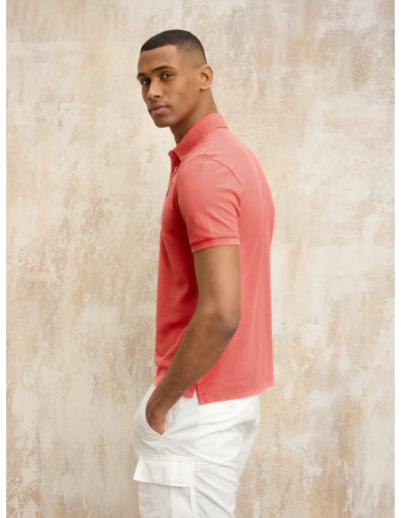 Este polo de corte clásico y ajuste ceñido es una prenda esencial para tu guardarropa diario. Su tratamiento especial le da un efecto desgastado, creando un look casual y moderno. Cuenta con detalles como cuello de canalé, escote con botones, mangas cortas con borde de canalé, aberturas en el bajo y una etiqueta con escudo con logo en el pecho.