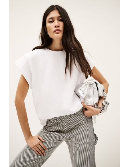 La camiseta Pio de Ba&SH reinterpreta el clásico de algodón con un giro moderno. Confeccionada en 100% algodón, tiene un corte recto, escote redondo y mangas cortas con dobladillo.
