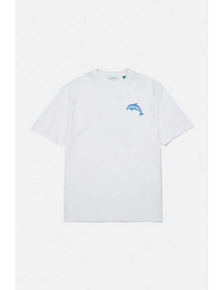 La camiseta Ed Souvenirs destaca por sus ilustraciones creativas: un delfín con la palabra Edmmond en el pecho y una tienda de recuerdos en la espalda. Confeccionada en Portugal con algodón orgánico, ofrece un corte relajado ideal para el día a día.