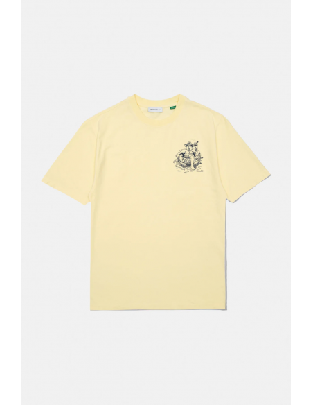 Camiseta de manga corta en color amarillo claro, confeccionada con algodón 100% orgánico y 220 gr/m², para un tacto suave y estructura duradera. Con un corte relajado y una ilustración llamativa en el pecho que aporta personalidad y color al look diario.