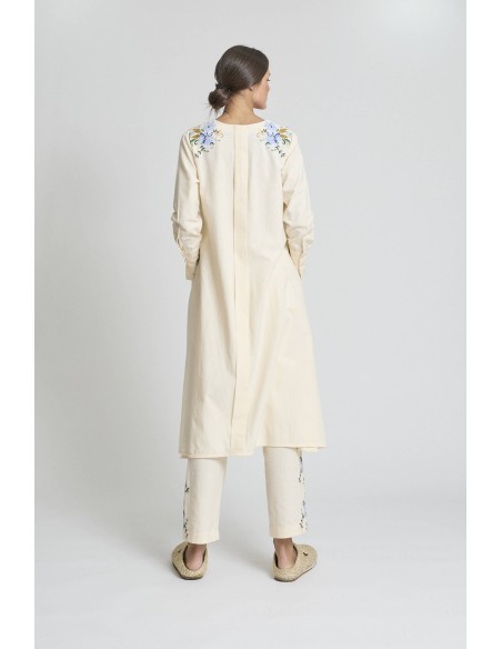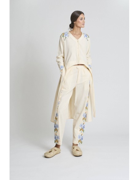 Su botonadura frontal clásica se enriquece con bordados decorativos, aportando distinción y un aire artesanal al conjunto. Ya sea combinada con pantalones de lino o jeans, la Yenisei eleva cualquier look con su fusión de simplicidad y elegancia.