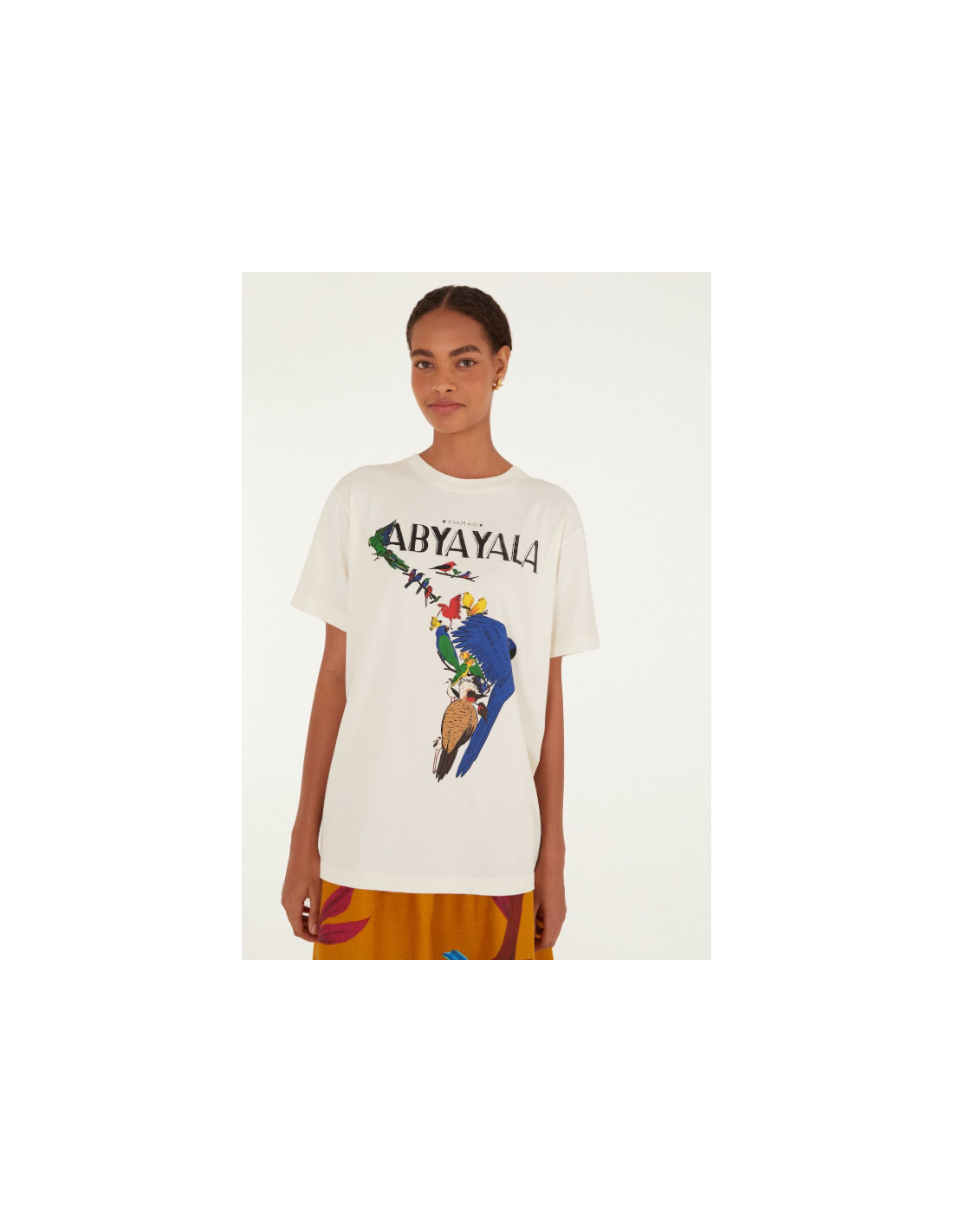 Camiseta Farm Rio Abya Yala blanca estampada – Camiseta oversize con print de aves mujer