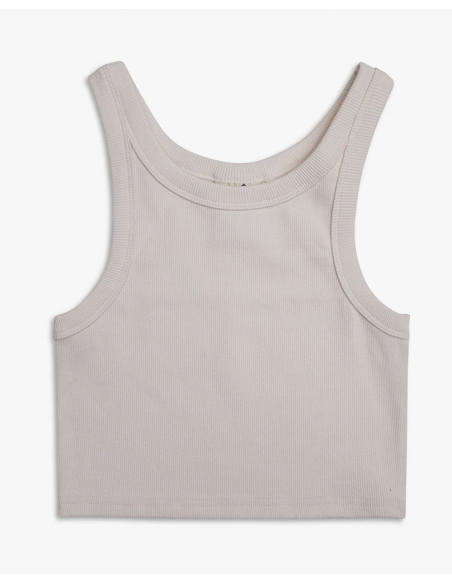 El top ajustado y corto es una prenda imprescindible en tu armario. Está confeccionado con un 95% de algodón orgánico y un 5% de elastano, lo que garantiza comodidad y elasticidad. Su tejido de jersey de costilla le da un aspecto favorecedor y duradero.
