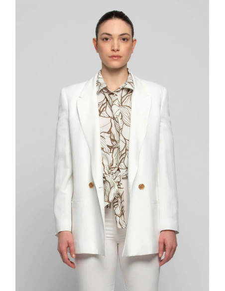 Chaqueta en tejido de mezcla de lino con viscosa de Better Natural Capsule, caracterizada por un corte recto y lineal, bolsillos de ribete y botonadura cruzada con botones en contraste. Una chaqueta con un corte cómodo, perfecta para llevar sobre tu conjunto informal de primavera.