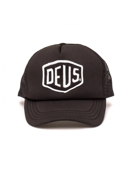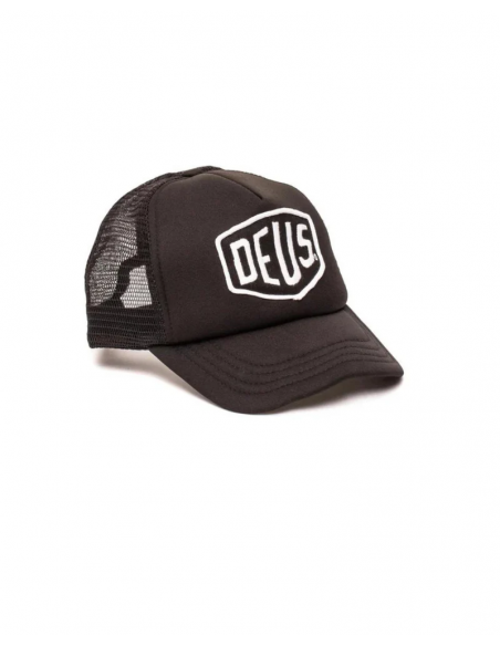 Gorra clásica tipo trucker con un bordado de escudo distintivo en la parte frontal. Está confeccionada con una combinación de tejido interlock de poliéster y malla, ofreciendo un diseño ligero y transpirable. Cuenta con un cierre ajustable en la parte trasera para un ajuste perfecto. Diseñada y probada en la icónica Deus House of Simple Pleasures, en Camperdown, Sídney, garantiza calidad y autenticidad en cada detalle.
