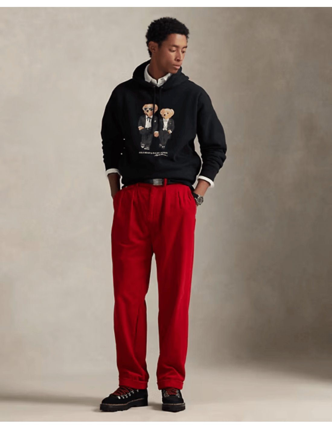 Destacada por los dos Polo Bears estampados y bordados en el centro, inspirados en una fotografía icónica de Ralph Lauren y su esposa en una entrega de premios de finales de los años 70, esta sudadera aporta elegancia y un toque narrativo. La capucha con cordón, los puños y dobladillo acanalados, y los bolsillos laterales invisibles completan el diseño funcional.