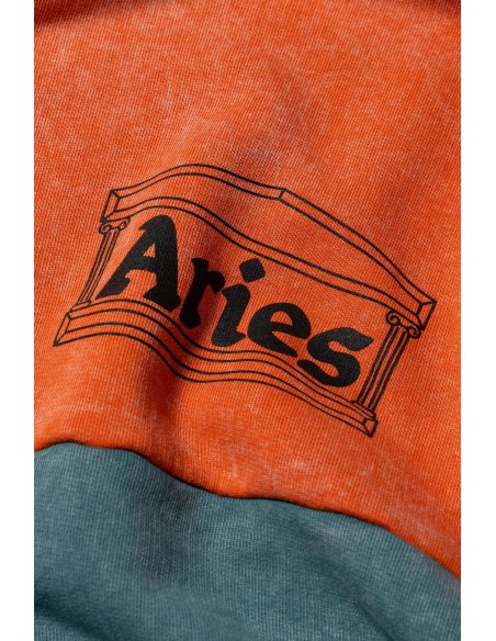 Sudadera con capucha confeccionada en tejido polar de punto cepillado. Realizada en bloques de color muy llamativos. Destaca el logotipo de Aries Temple en el pecho y un estampado de columna en la manga y acabado con un tratamiento de lavado ácido.